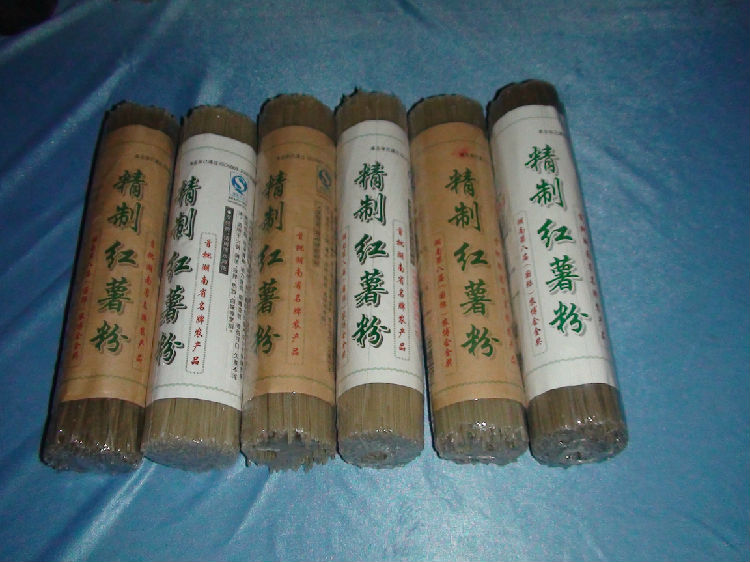 紅薯粉條,灰色、黃色,有寬有細,營養豐富,和紅薯一樣,是抗癌食品。適于熬、炒和涼拌。
