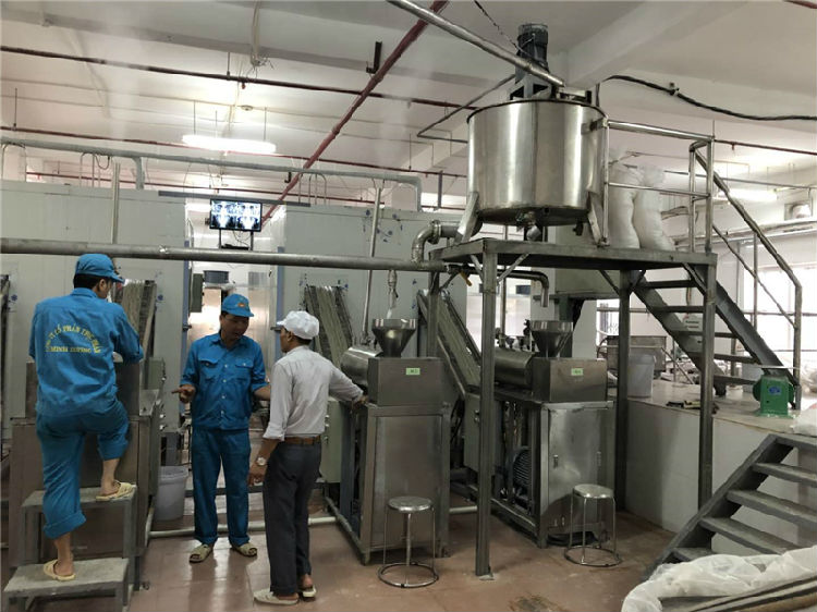 6、粉條機在生產當中生產的粉條慢慢變細拉長然后斷掉,一般是淀粉漿調節過稀,應當及時添加淀粉攪拌均勻,提高濃度。